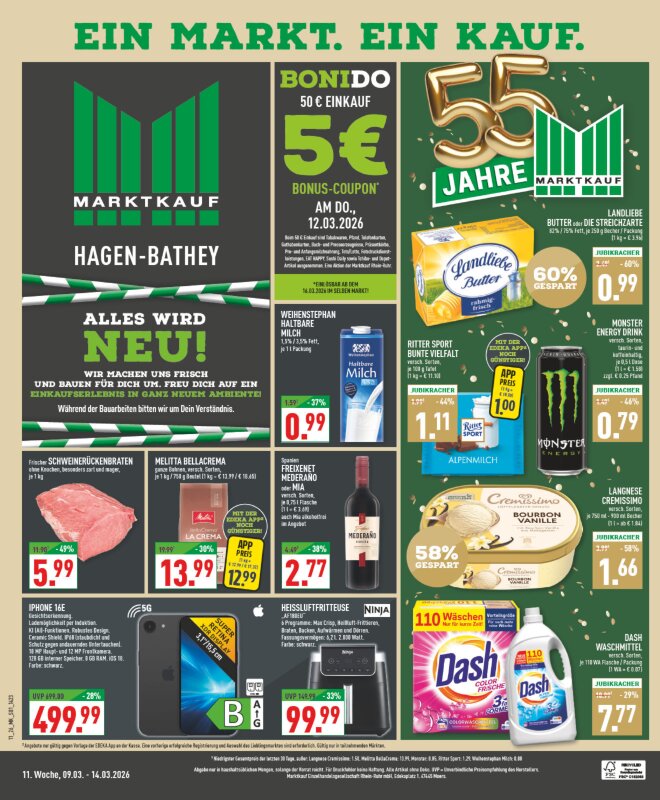 BoniDo bei MarktkaufDonnerstag ist wieder BoniDo.🥳 Wir schenken Dir am 12.03.2026 einen 5€ Bonus-Coupon ab…» Mehr erfahren